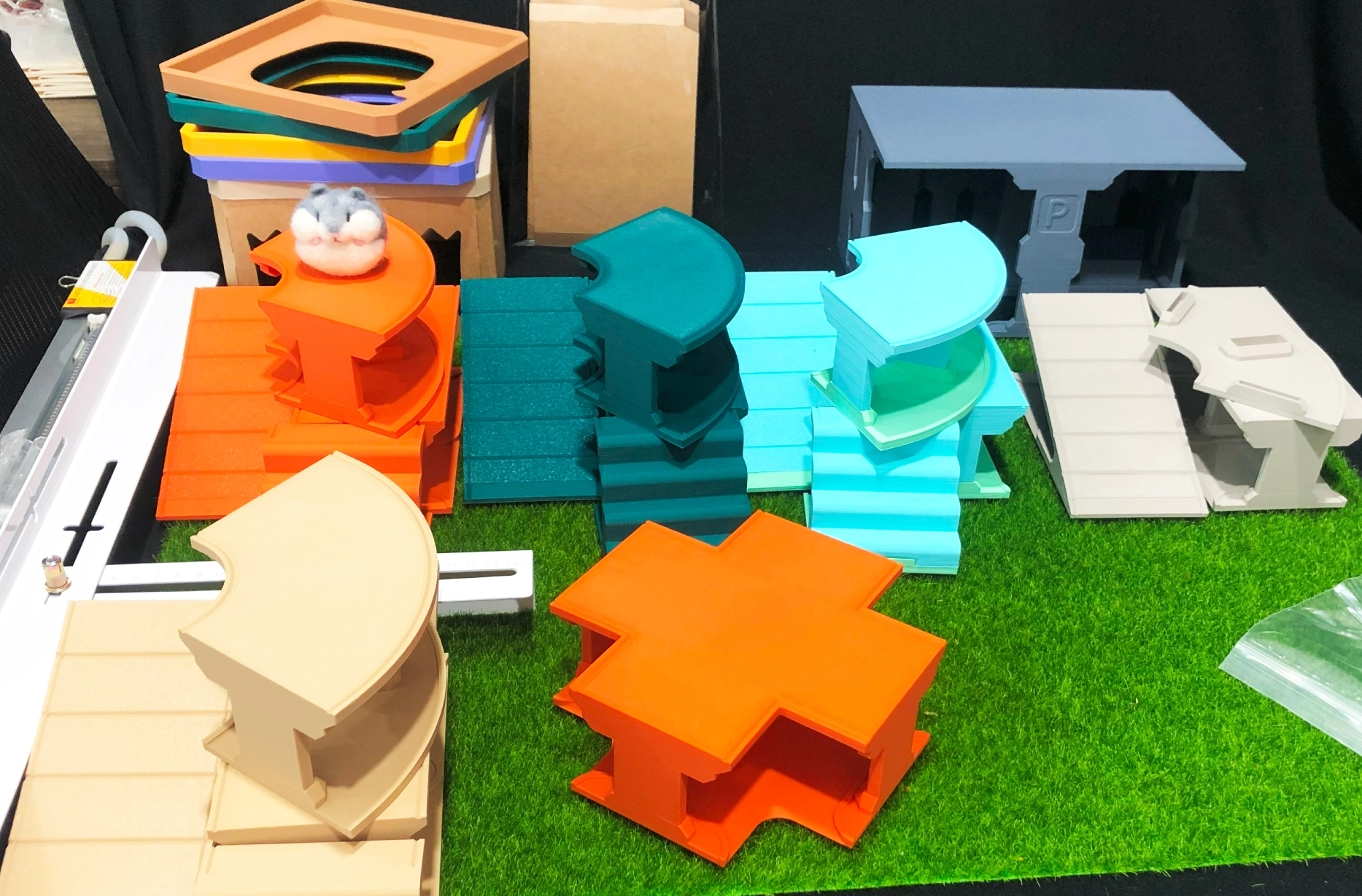 We use our own 3D printers to produce a large number of samples as much as possible, and we implement them in a hamster cage for direct use. We observe any potential wear and tear on the products themselves, followed by repeated testing and modifications. At the same time, we test the samples in extreme environments, such as alcohol, disinfectant, sunlight, and warm water rinsing, to ensure that the products can not only be used effectively but also undergo proper disinfection.